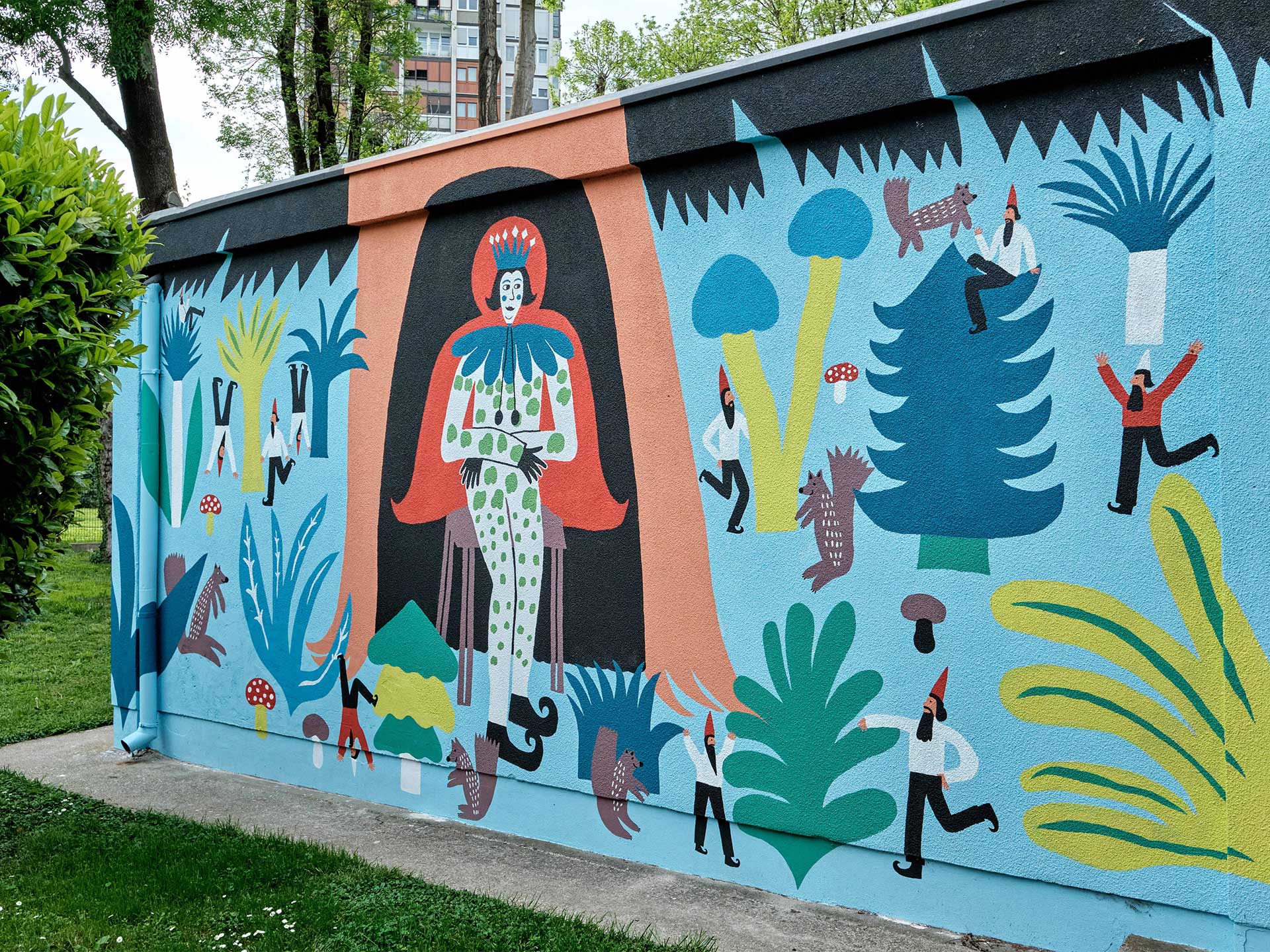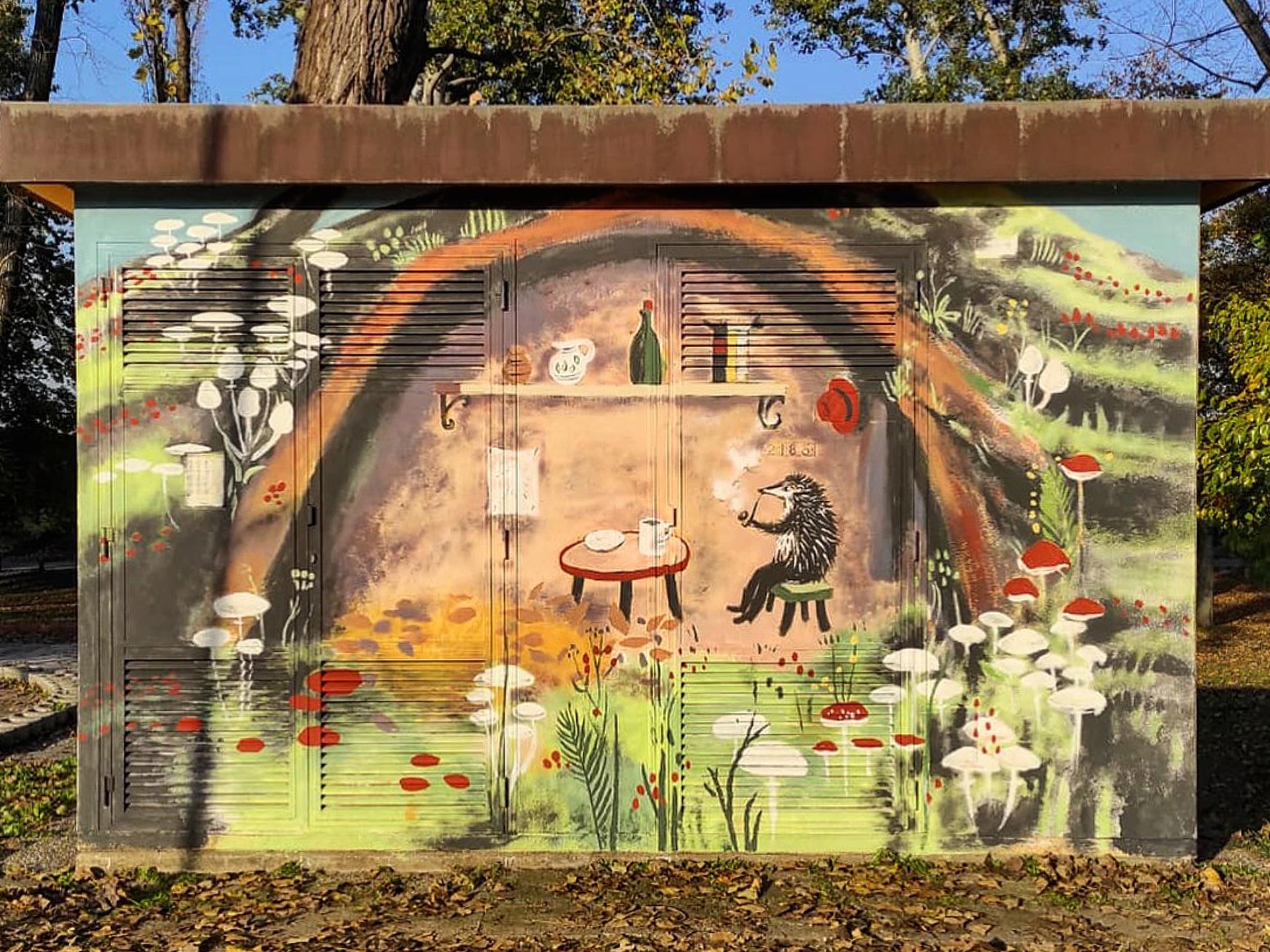 Motivi iz „Priča iz davnine“ sada krase zidove ovog energetskog objekta, donoseći čaroliju iz bajki u srca prolaznika. Ilustracije su vesele i razigrane, odajući počast mašti i stvaralaštvu Brlić Mažuranić, dok istovremeno promiču važnost umjetnosti u javnom prostoru. Ovo umjetničko djelo nije samo vizualni doživljaj već i podsjetnik na važnost očuvanja naše književne baštine i njezino približavanje novim generacijama.